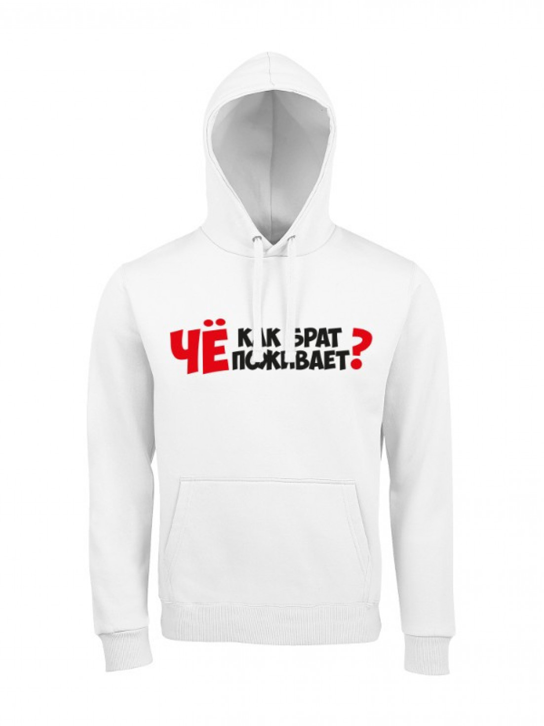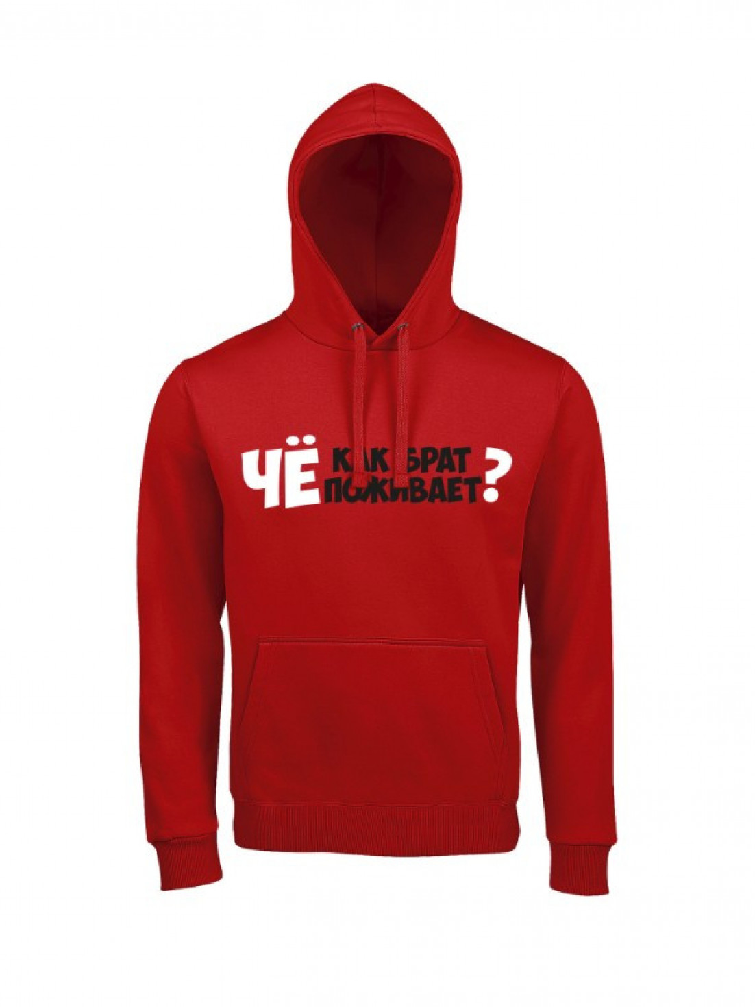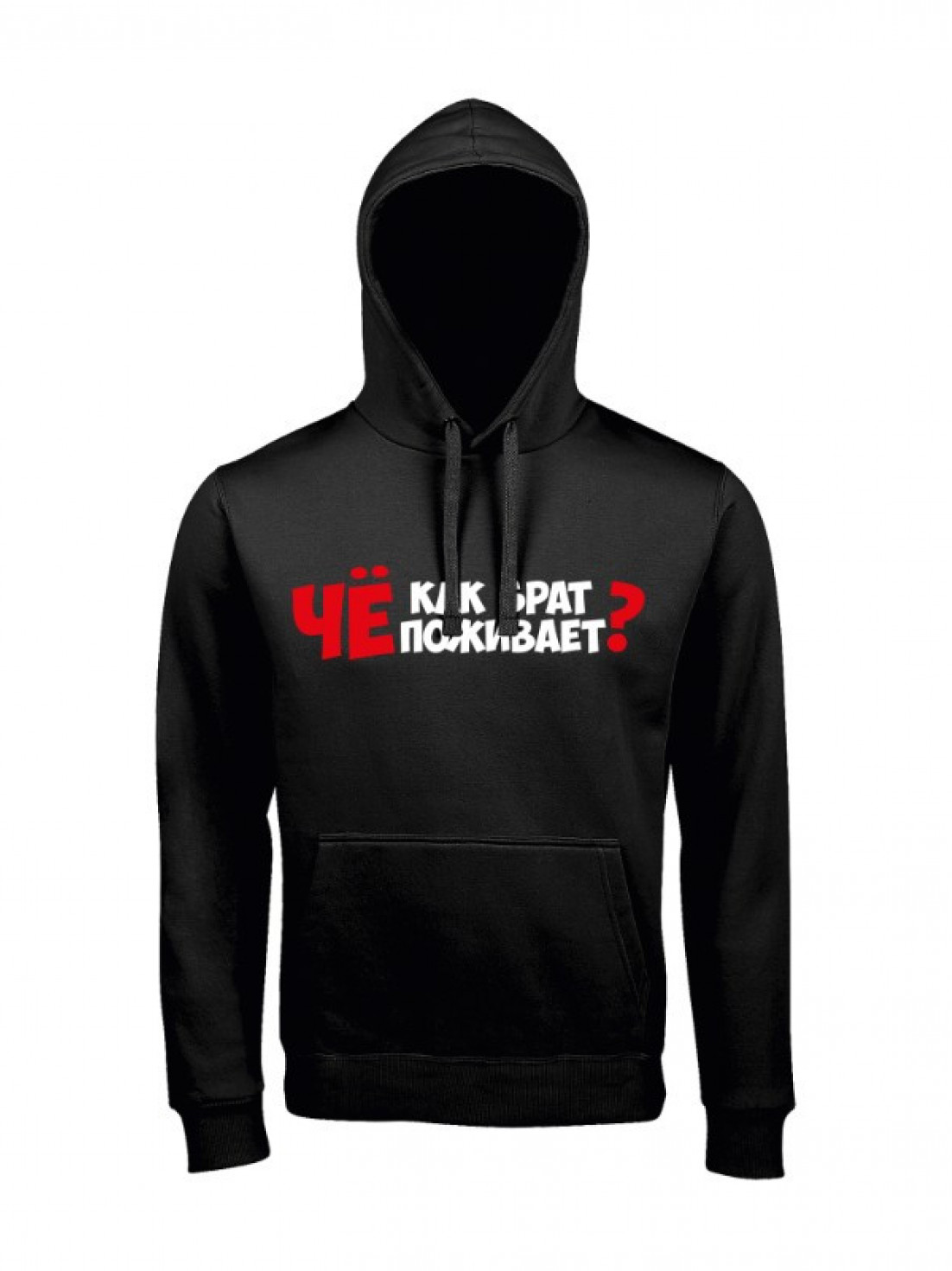 Unisex худи блогера ПроБро. На передней части худи, в районе груди размещен принт - “Чё как брат поживает?”. Принт нанесен пленкой. Данный принт выдерживает 40 стирок, при условии, если стирать худи при температуре не выше 30 градусов и не использовать сушилку. Имеется четыре цветовых варианта худи: черная (принт - бело красный), french navy (принт - бело красный), белая (принт - черно красный) и красная (принт - черно белый). Примечание, фотографии товара - компьютерная визуализация.