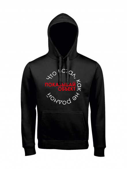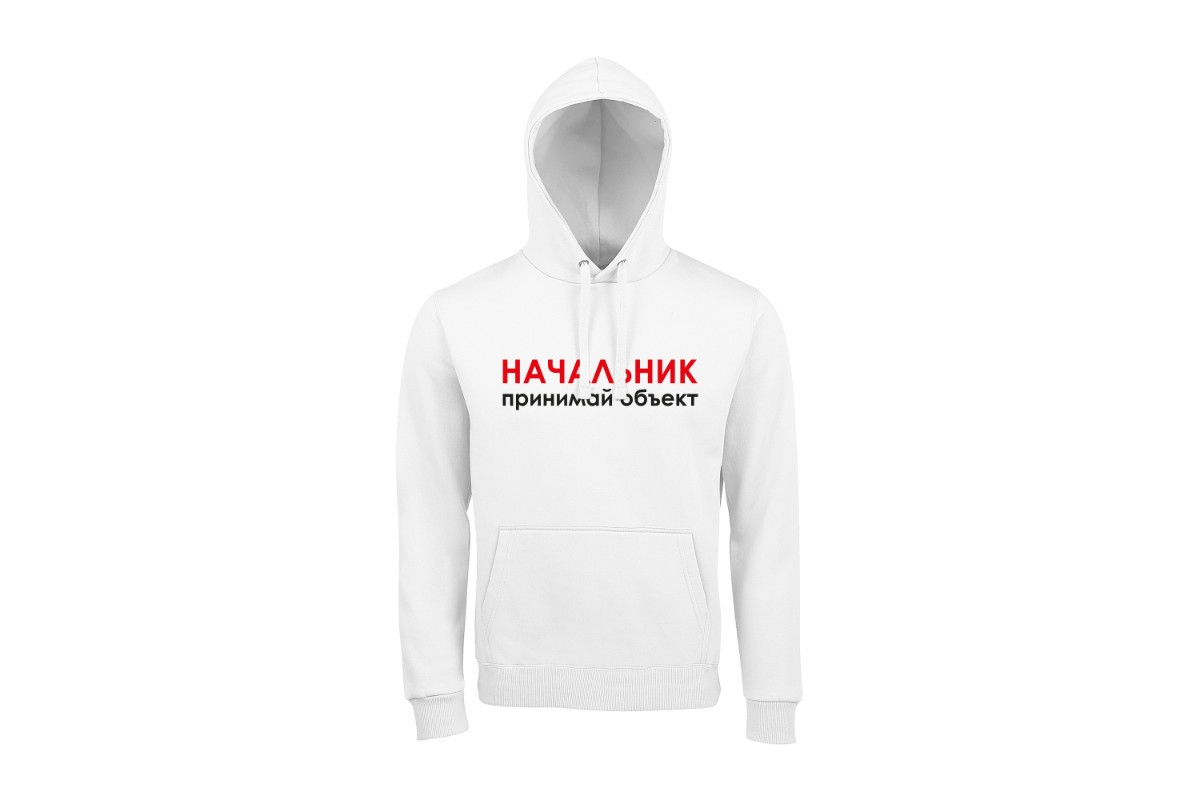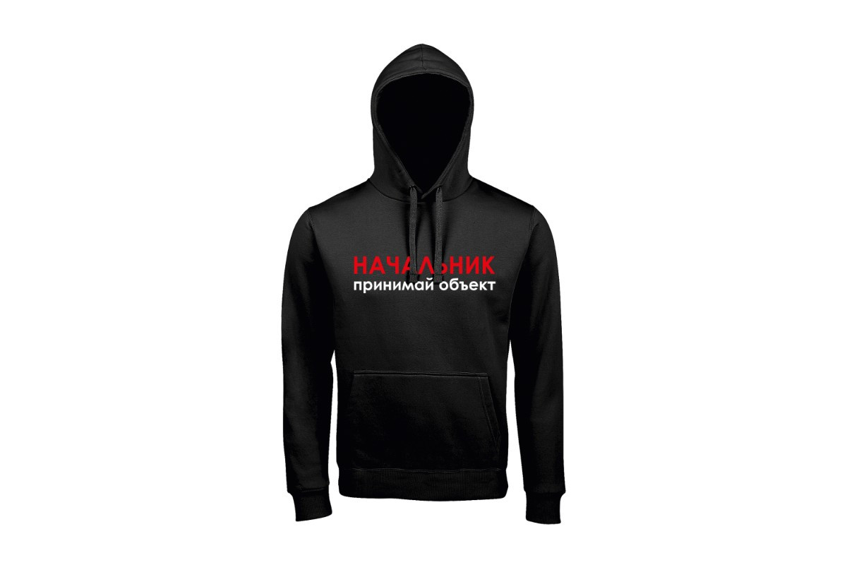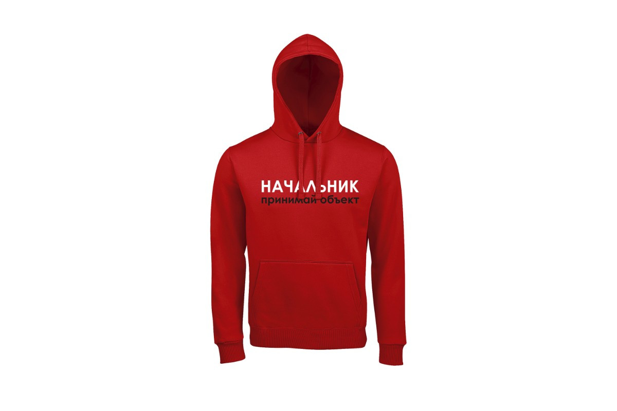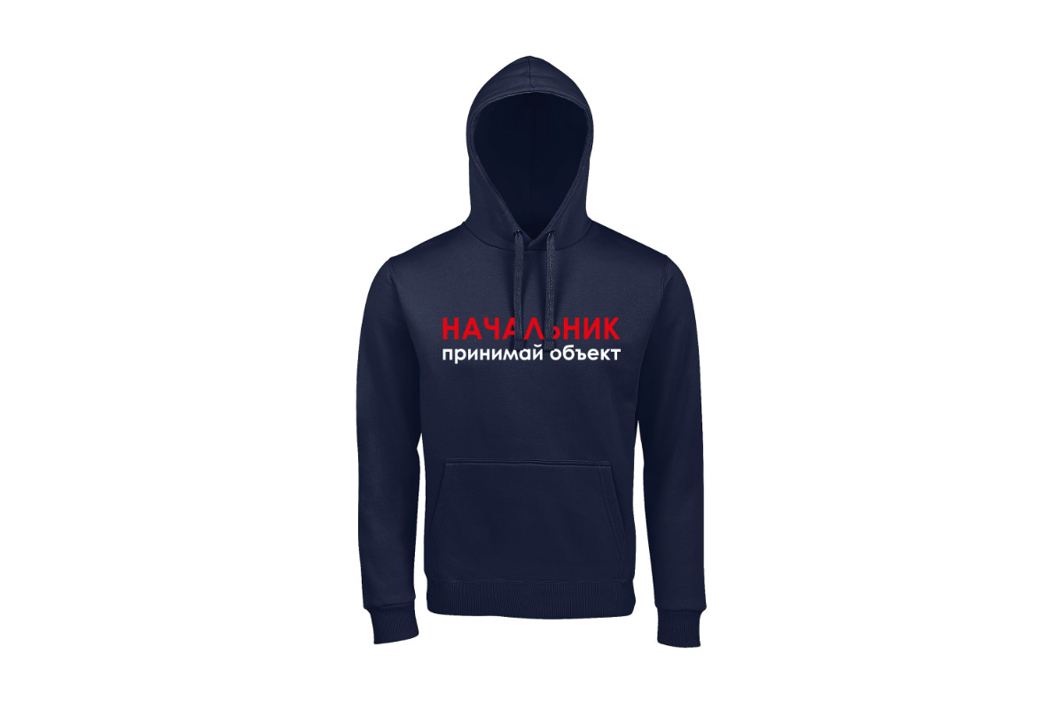 Unisex худи блогера ПроБро. На передней части худи, в районе груди размещен принт - “Начальник принимай объект”, на задней части худи, размещен принт - “5000 м² и неважно как это сделано”. Принт нанесен пленкой. Данный принт выдерживает 40 стирок, при условии, если стирать худи при температуре не выше 30 градусов и не использовать сушилку. Имеется четыре цветовых варианта худи: черная (принт - бело красный), french navy (принт - бело красный), белая (принт - черно красный) и красная (принт - черно белый). Примечание, фотографии товара - компьютерная визуализация.