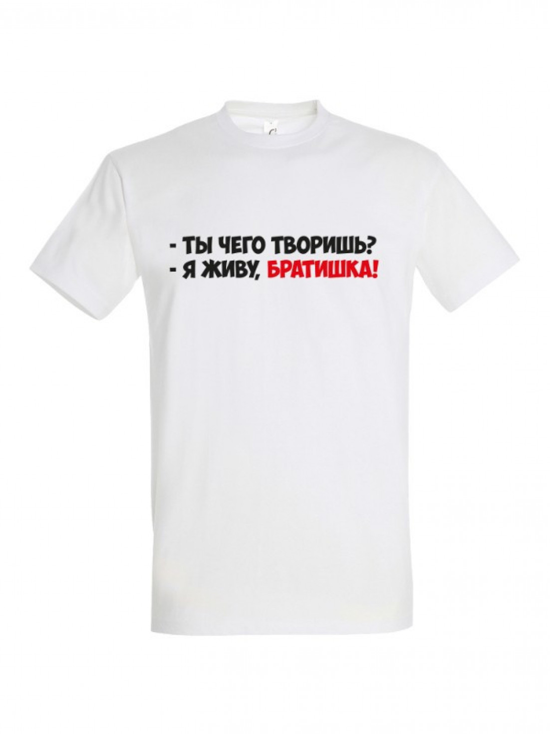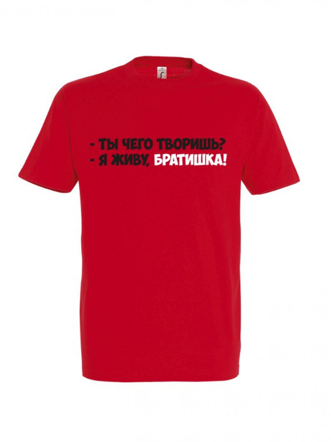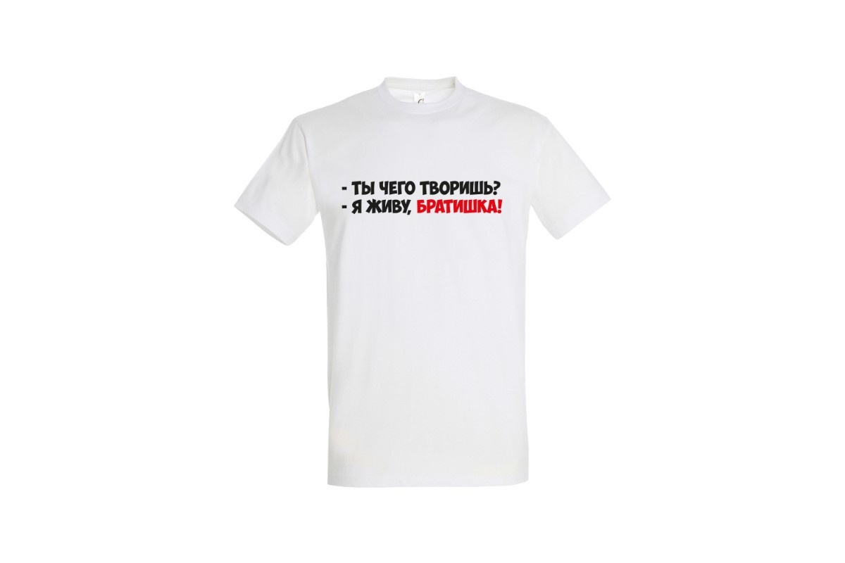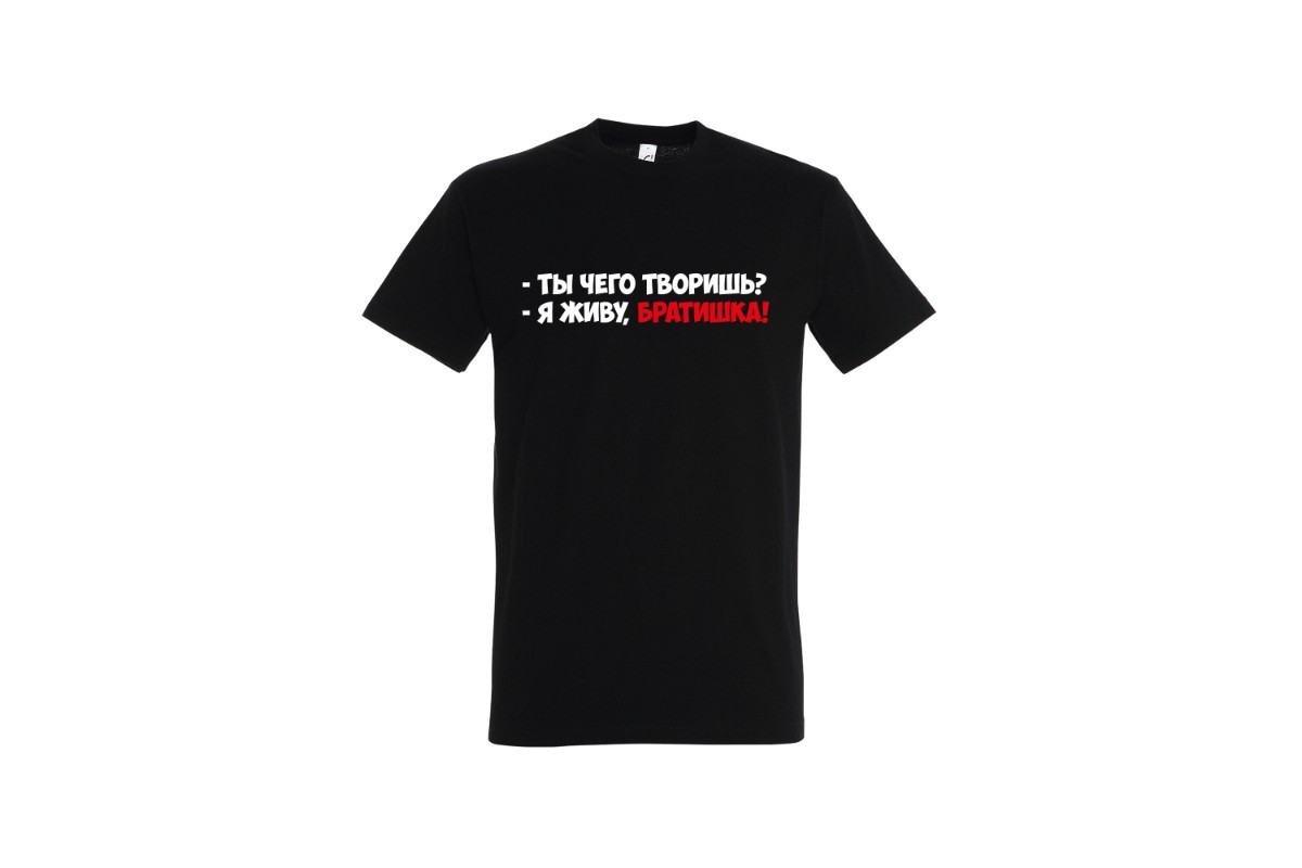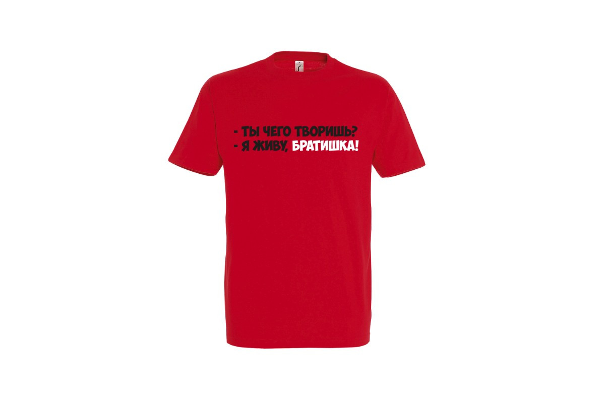 Unisex майка блогера ПроБро. На передней части майки, в районе груди размещен принт - “Ты чего творишь? Я живу, братишка!”. Принт нанесен пленкой. Данный принт выдерживает 40 стирок, при условии, если стирать майку при температуре не выше 30 градусов и не использовать сушилку. Имеется четыре цветовых варианта майки: черная (принт - бело красный), french navy (принт - бело красный), белая (принт - черно красный) и красная (принт - черно белый). Примечание, фотографии товара - компьютерная визуализация.