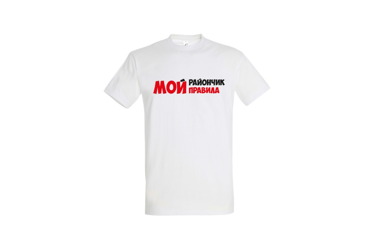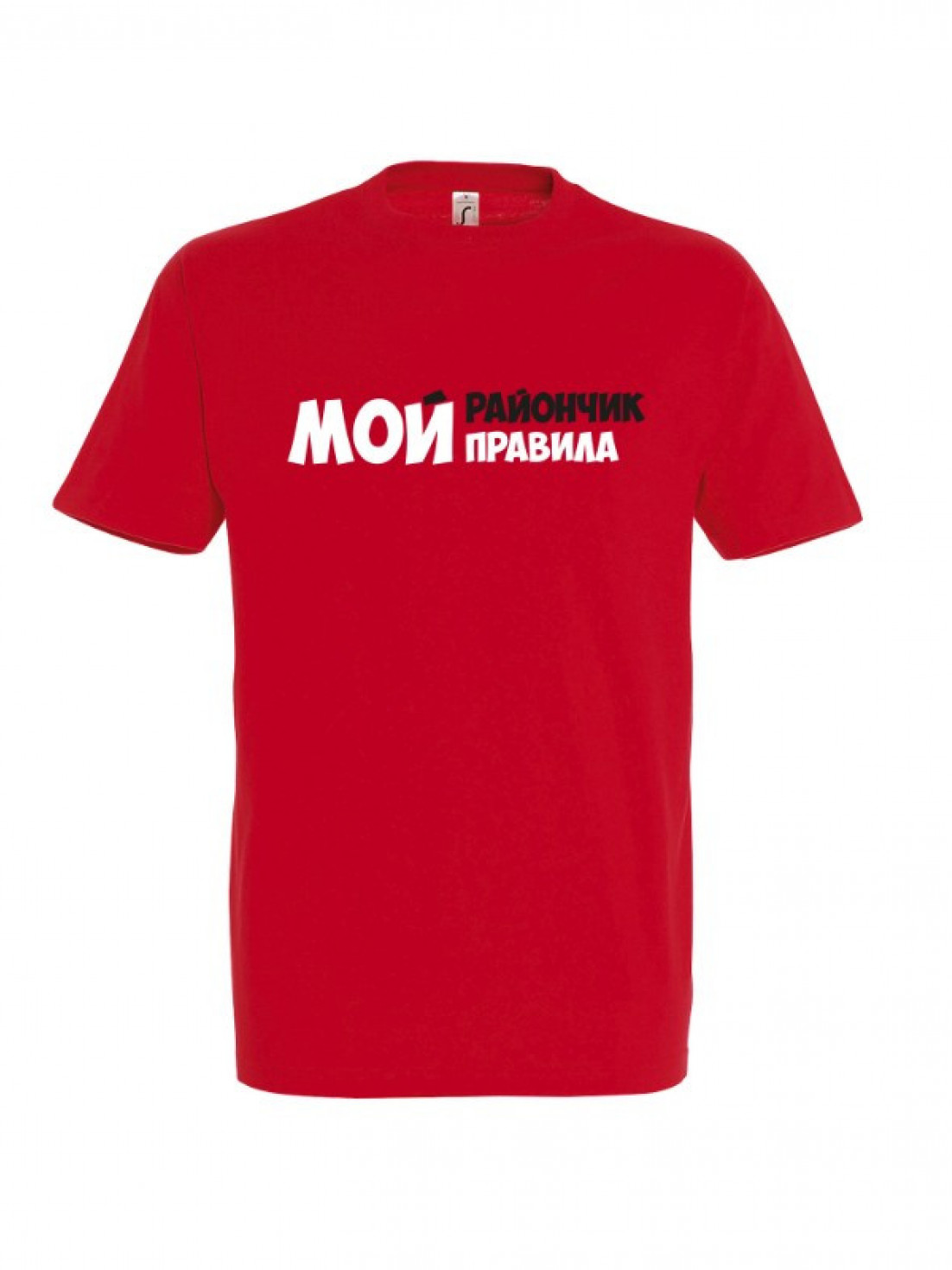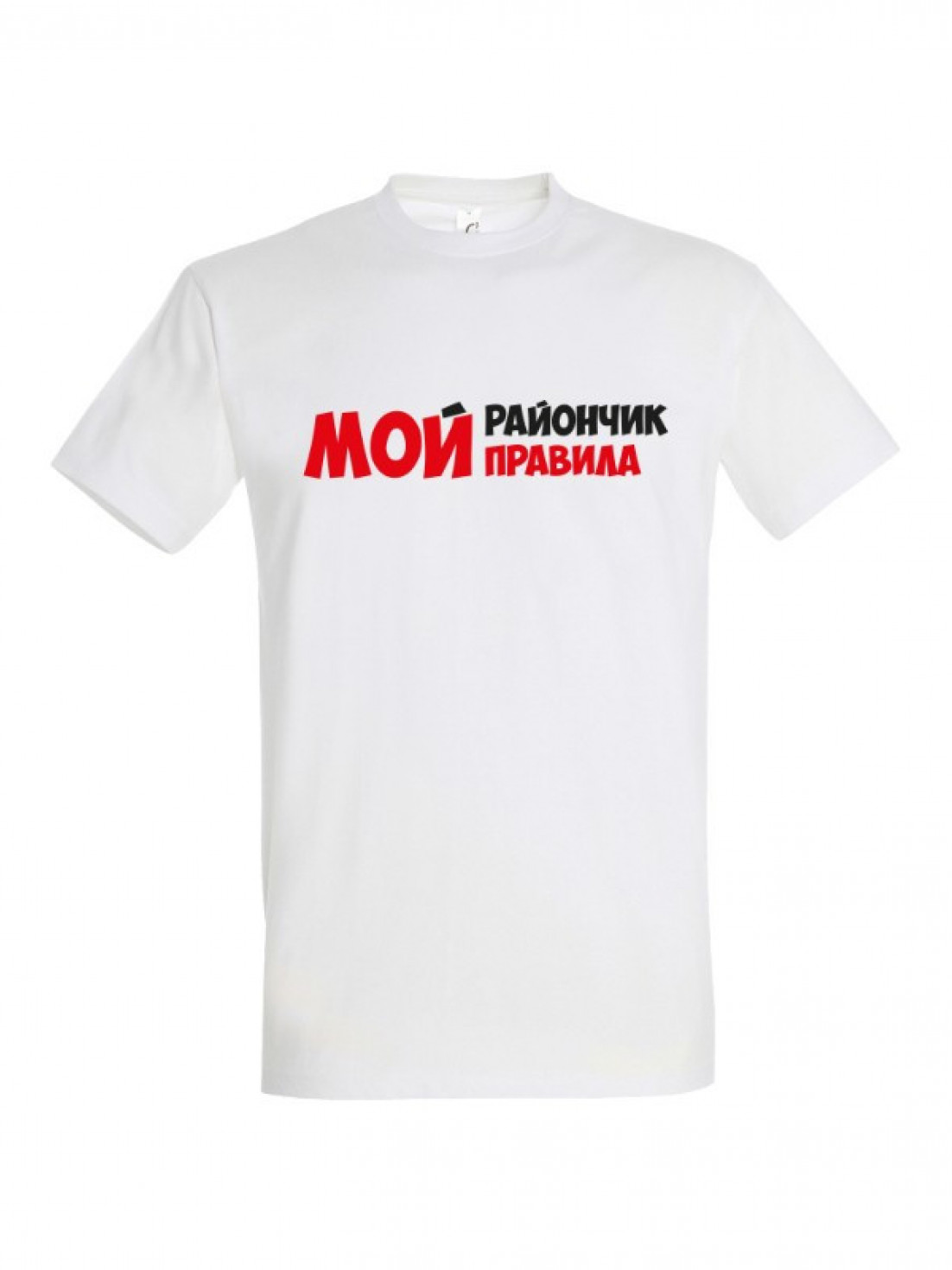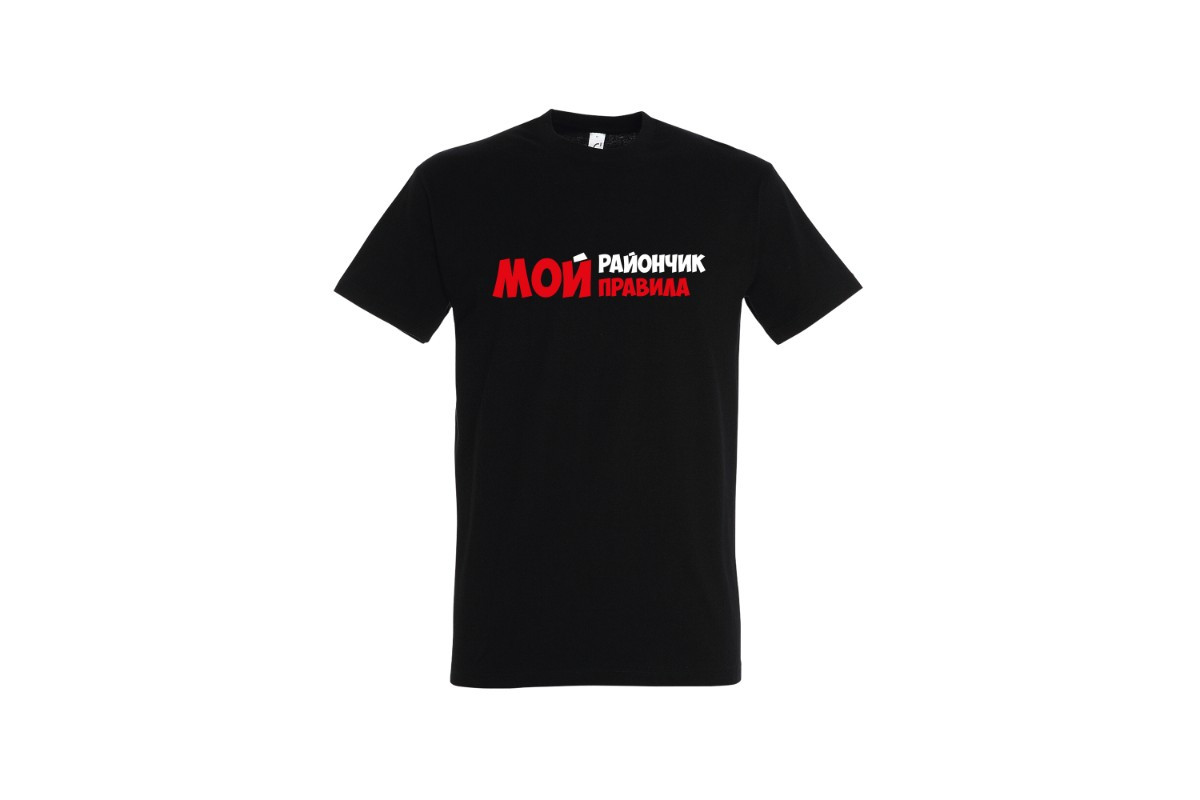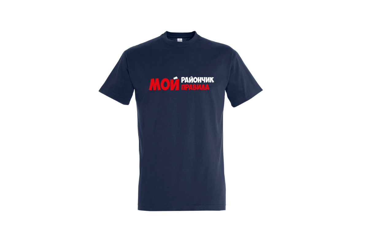 Unisex майка блогера ПроБро. На передней части майки, в районе груди размещен принт - “Мой райончик мои правила”. Принт нанесен пленкой. Данный принт выдерживает 40 стирок, при условии, если стирать майку при температуре не выше 30 градусов и не использовать сушилку. Имеется четыре цветовых варианта майки: черная (принт - бело красный), french navy (принт - бело красный), белая (принт - черно красный) и красная (принт - черно белый). Примечание, фотографии товара - компьютерная визуализация.