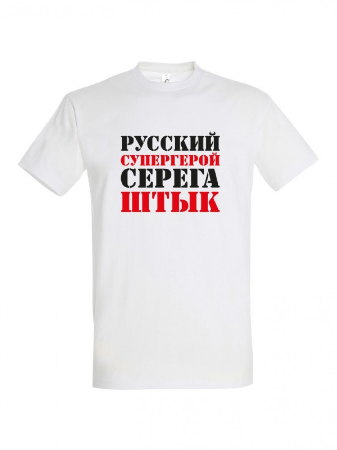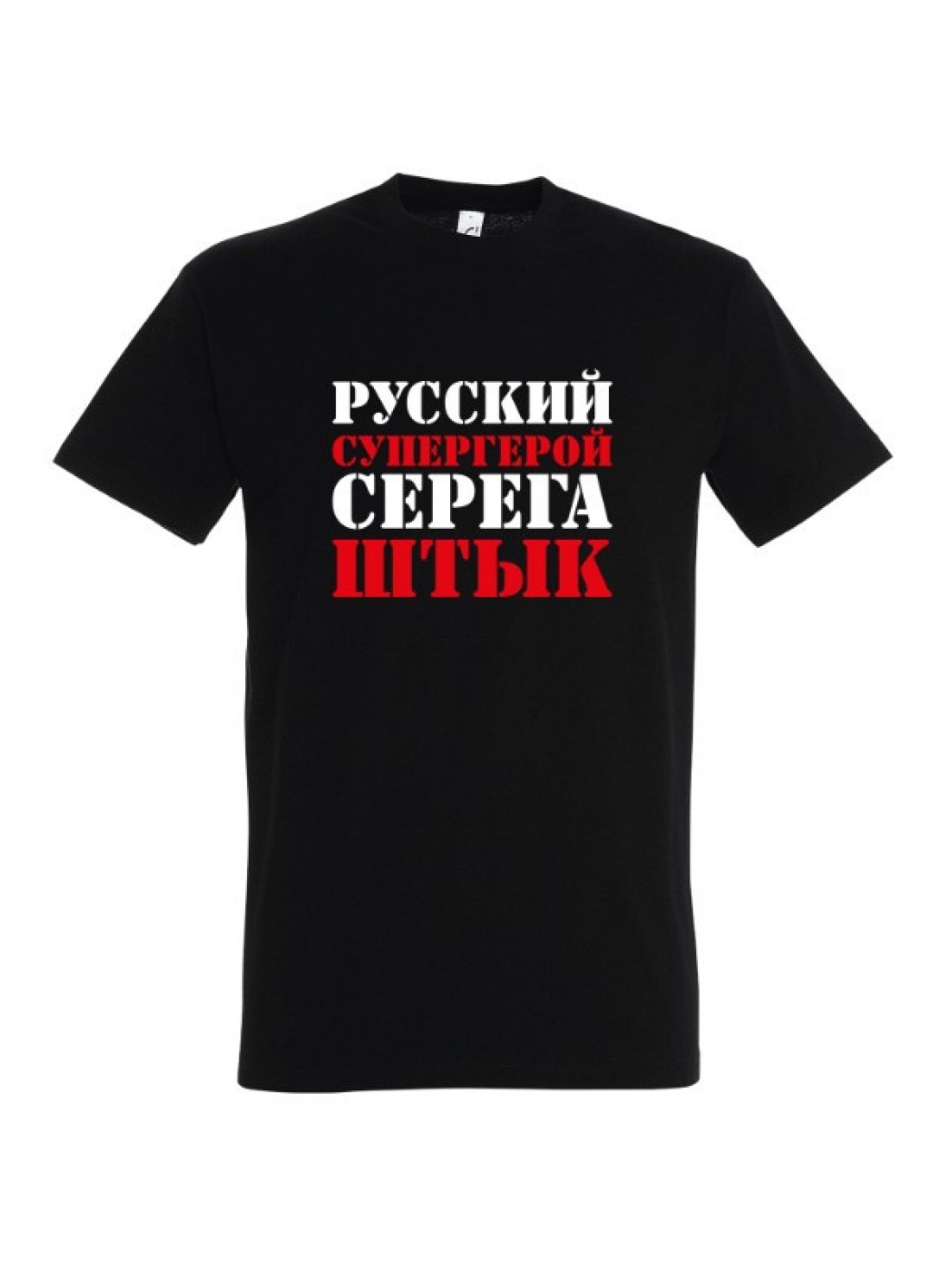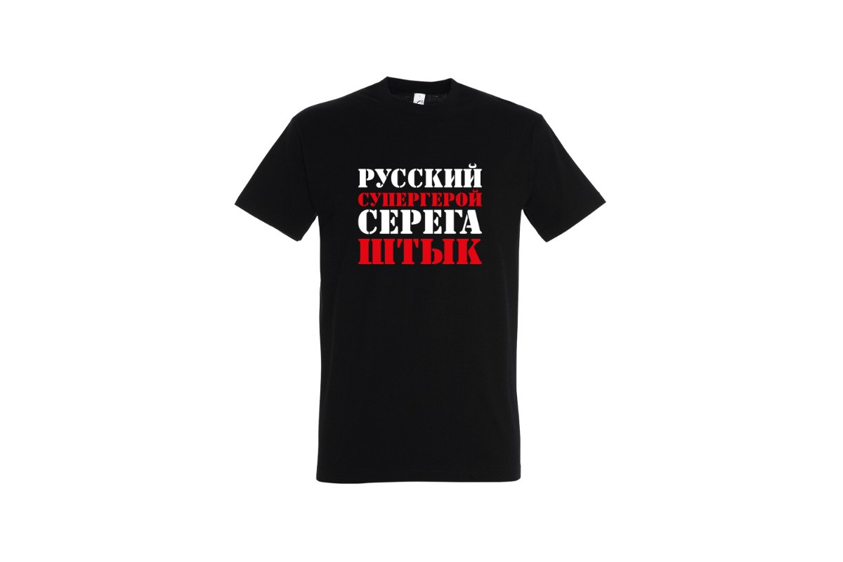 Unisex майка блогера ПроБро. На передней части майки, в районе груди размещен принт - “Русский супергерой Серега Штык”. Принт нанесен пленкой. Данный принт выдерживает 40 стирок, при условии, если стирать майку при температуре не выше 30 градусов и не использовать сушилку. Имеется четыре цветовых варианта майки: черная (принт - бело красный), french navy (принт - бело красный), белая (принт - черно красный) и красная (принт - черно белый). Примечание, фотографии товара - компьютерная визуализация.