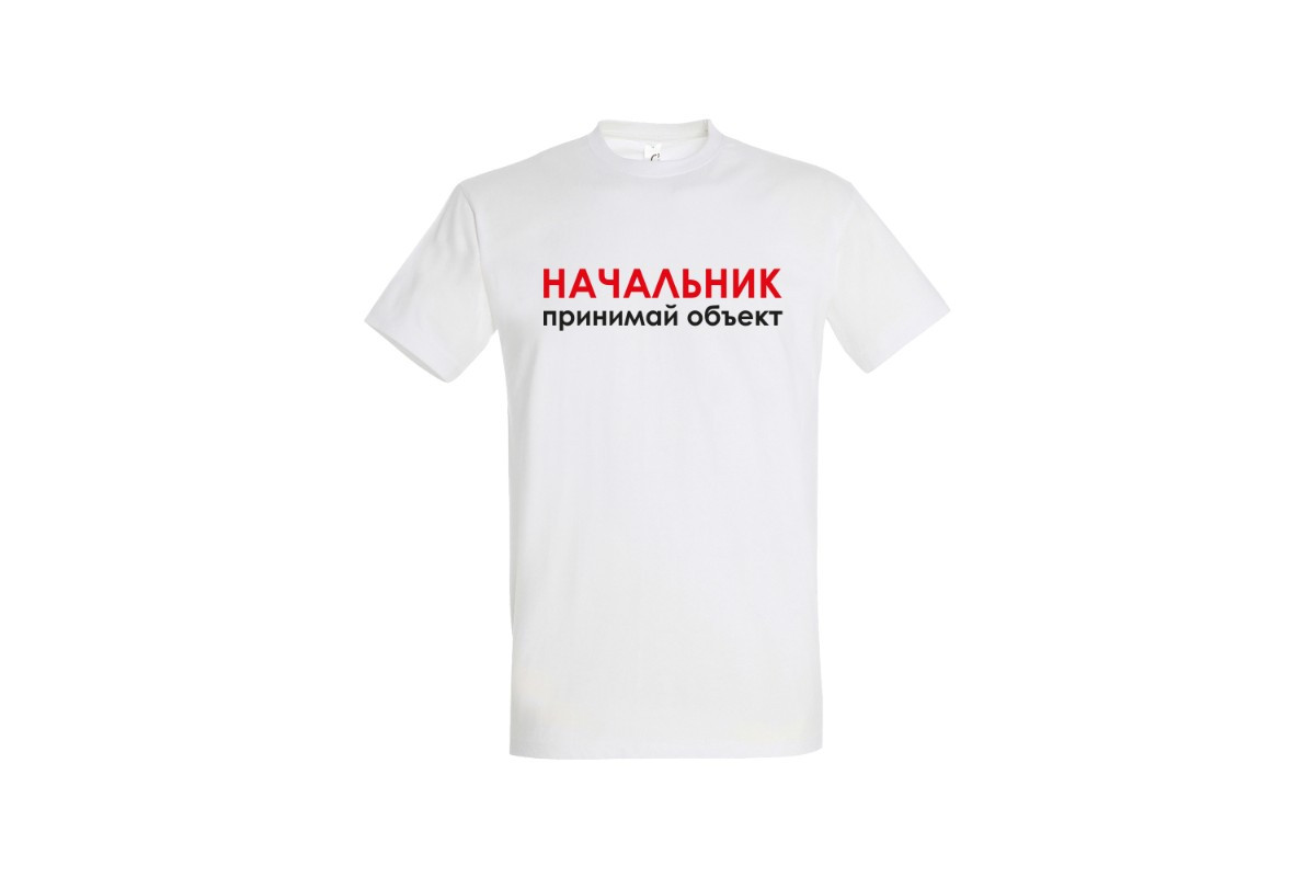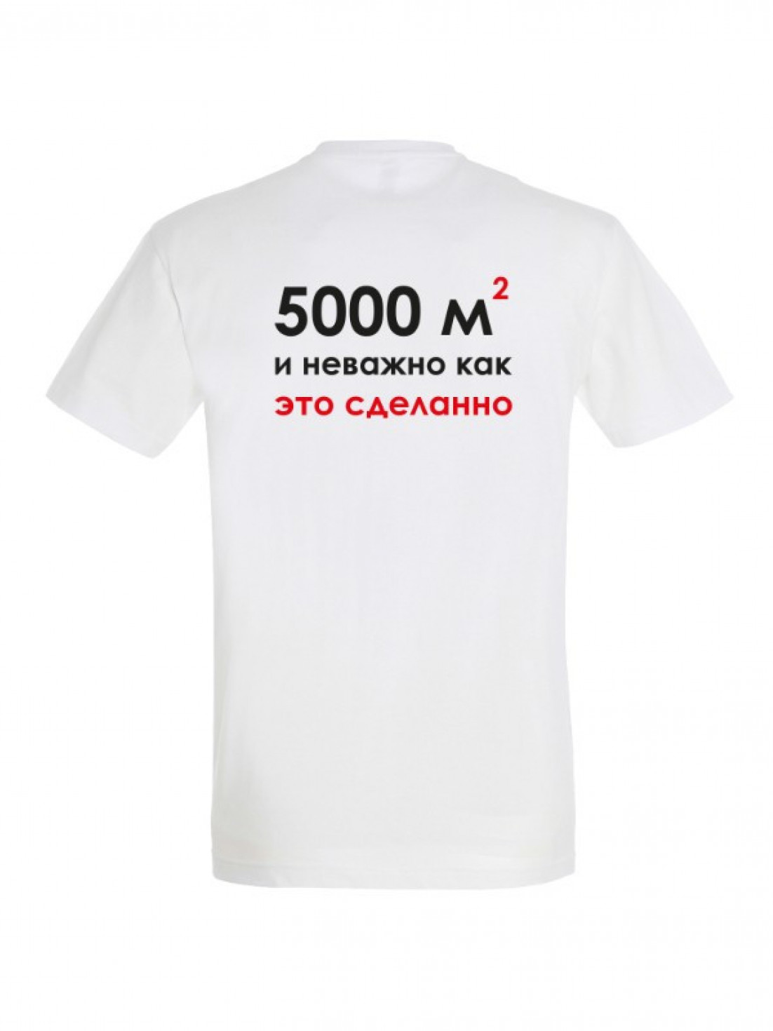 Unisex майка блогера ПроБро. На передней части майки, в районе груди размещен принт - “Начальник принимай объект”, на задней части майки, размещен принт - “5000 м² и неважно как это сделано”. Принт нанесен пленкой. Данный принт выдерживает 40 стирок, при условии, если стирать майку при температуре не выше 30 градусов и не использовать сушилку. Имеется четыре цветовых варианта майки: черная (принт - бело красный), french navy (принт - бело красный), белая (принт - черно красный) и красная (принт - черно белый). Примечание, фотографии товара - компьютерная визуализация.